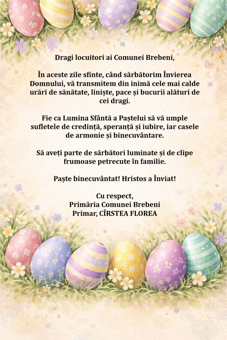 Dragi cetățeni ai comunei Brebeni,