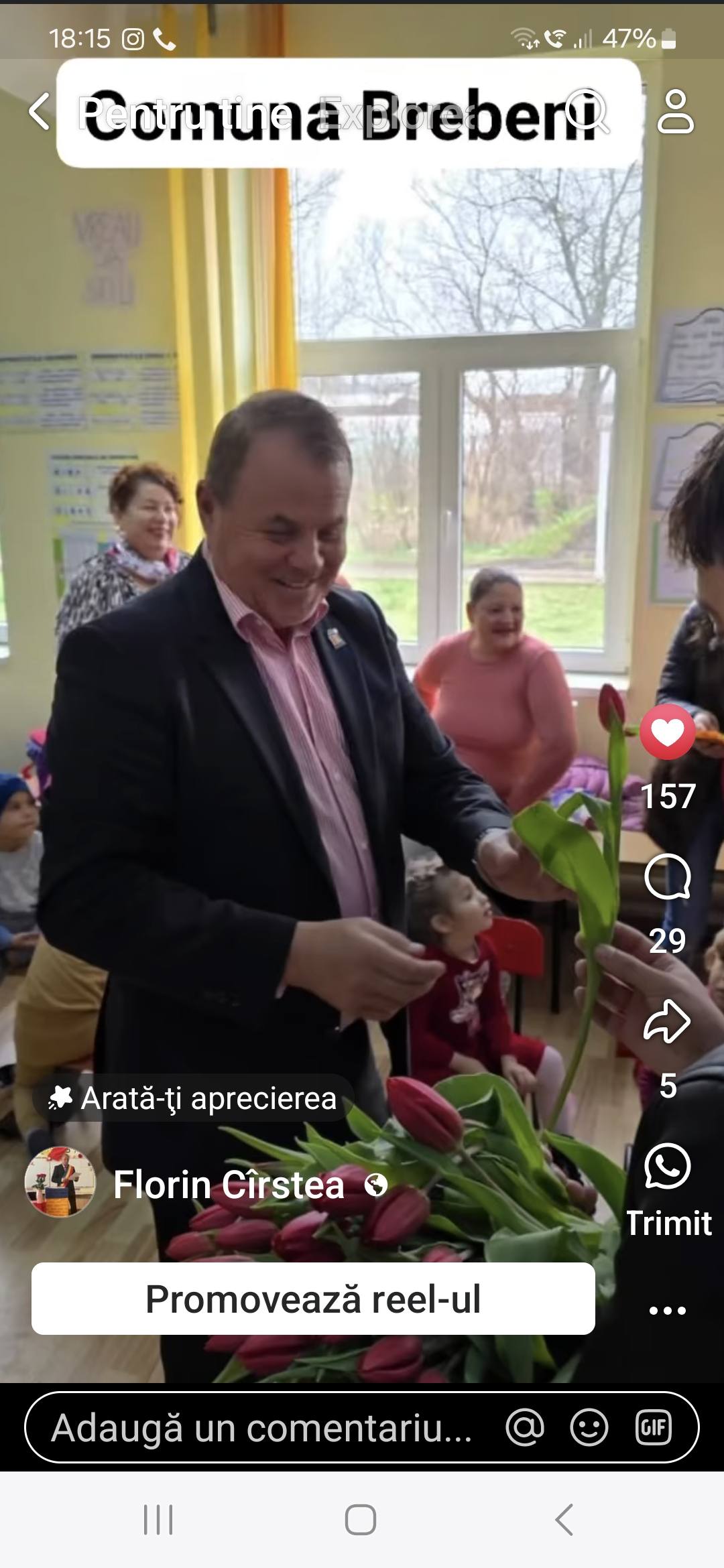 1 Martie in Comuna Brebeni cu flori si martisoare